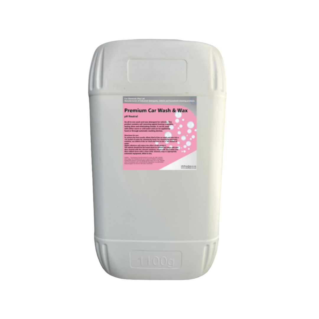 Car Wash And Wax is a versatile exterior vehicle cleaning detergent liquid with a soil-removing agent that leaves a long-lasting shine. It can be used with both warm and cold water, applied manually or with automatic washing devices, and it includes an additional wax component.